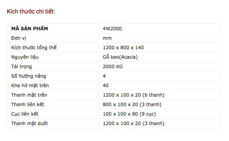 Pallet gỗ 4 hướng nâng tải trọng 2 tấn