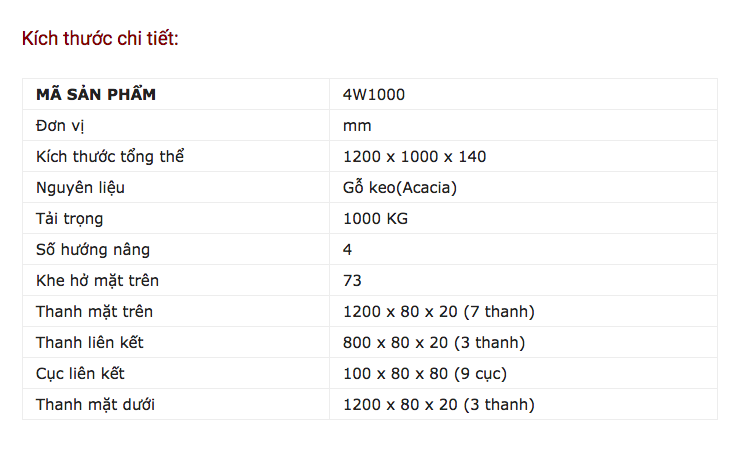 Pallet gỗ 4 hướng nâng tải trọng 1 tấn